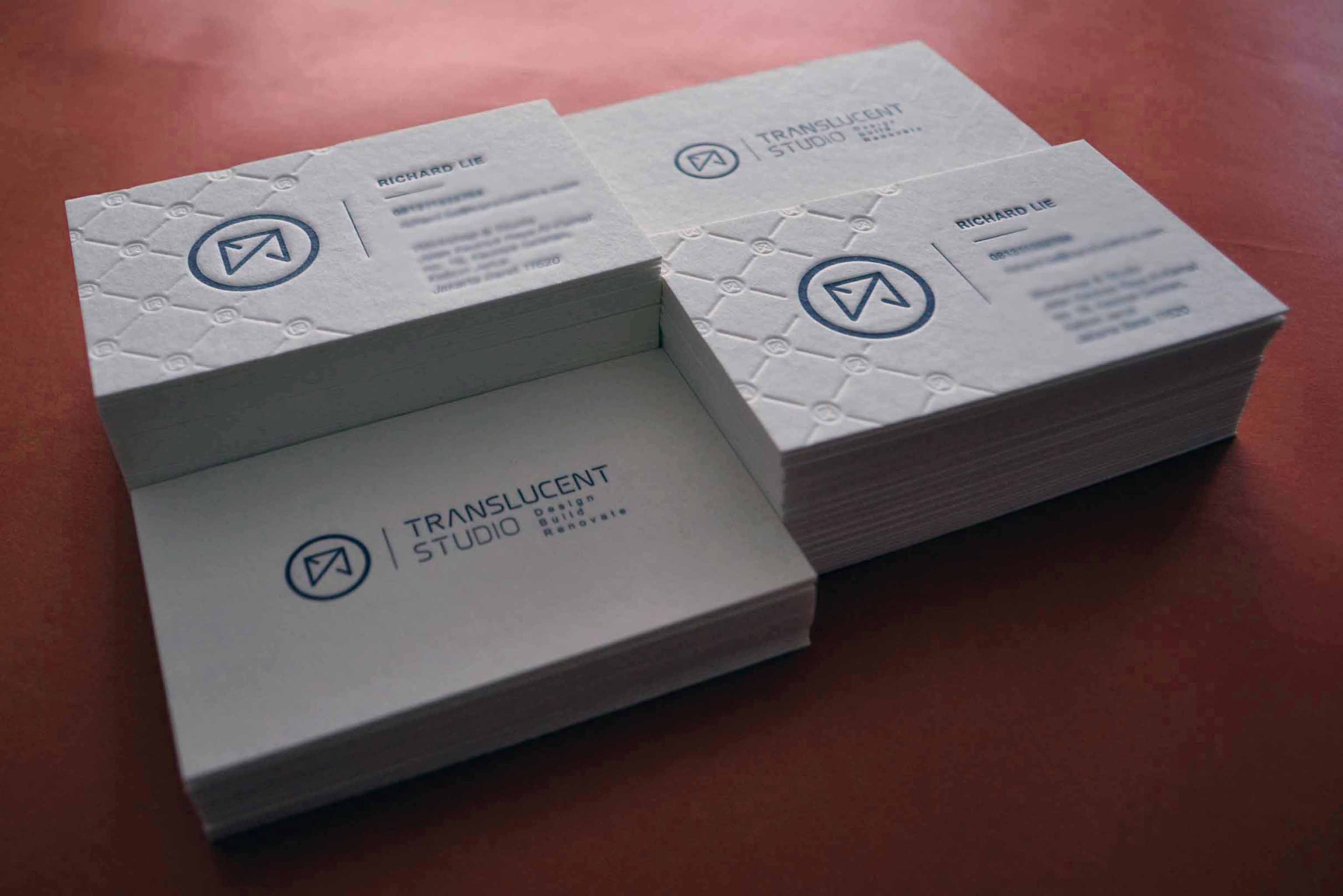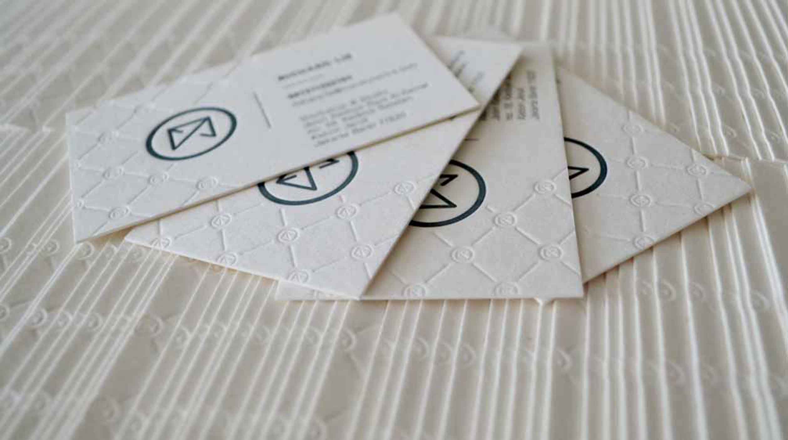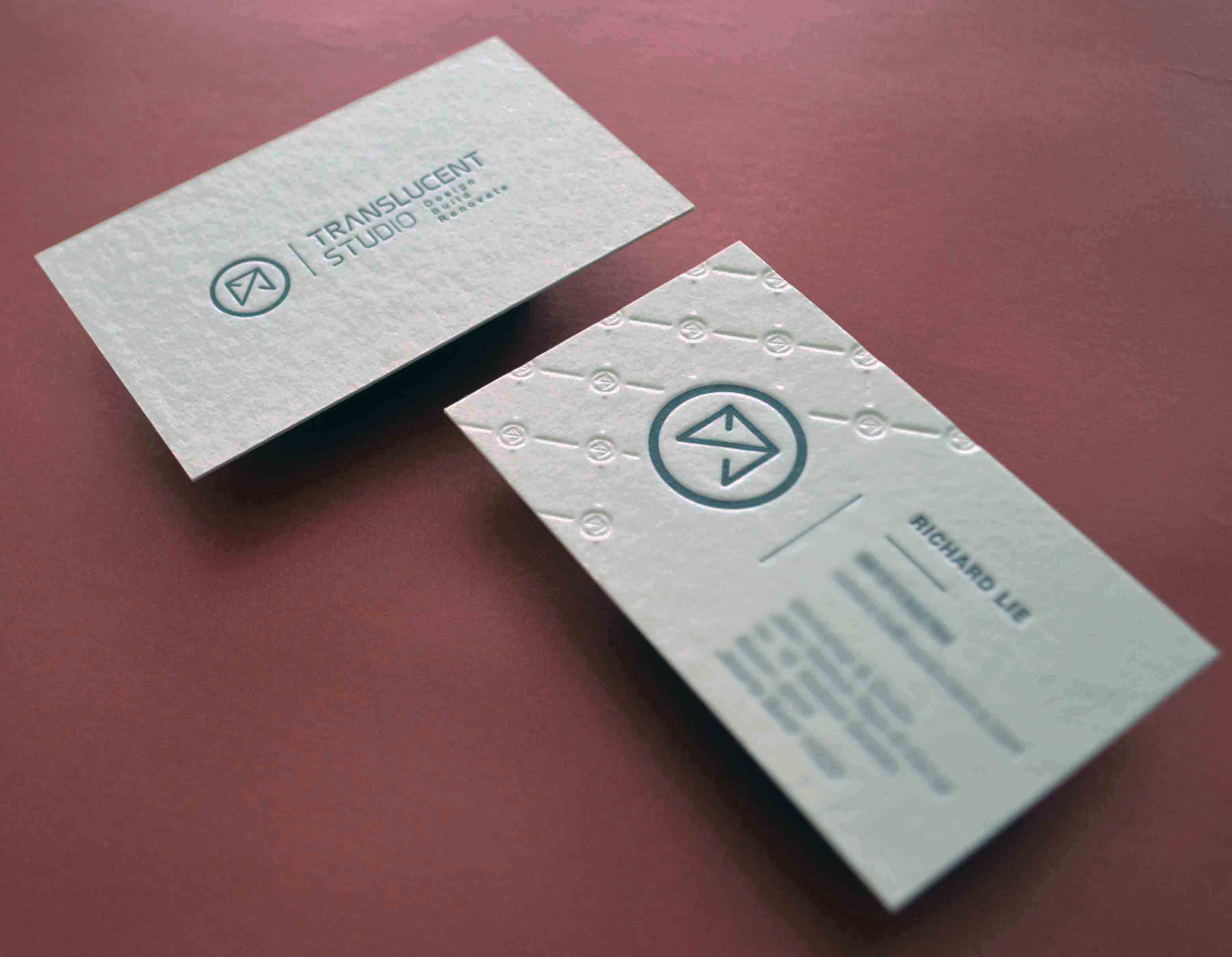 Letterpress Business Card // 3 colour runs (2 colour + 1 blind) // Double side print // Specially customised logo-based patterns // Cotton stock