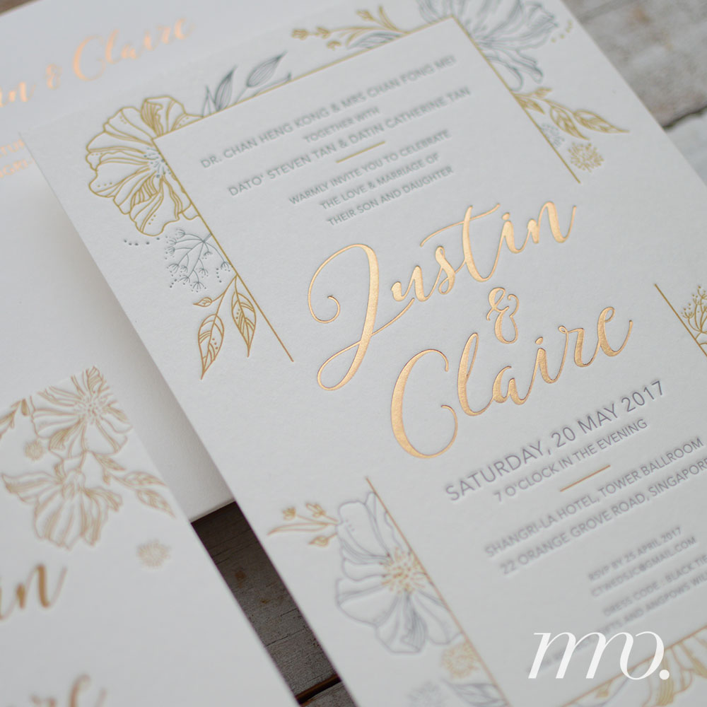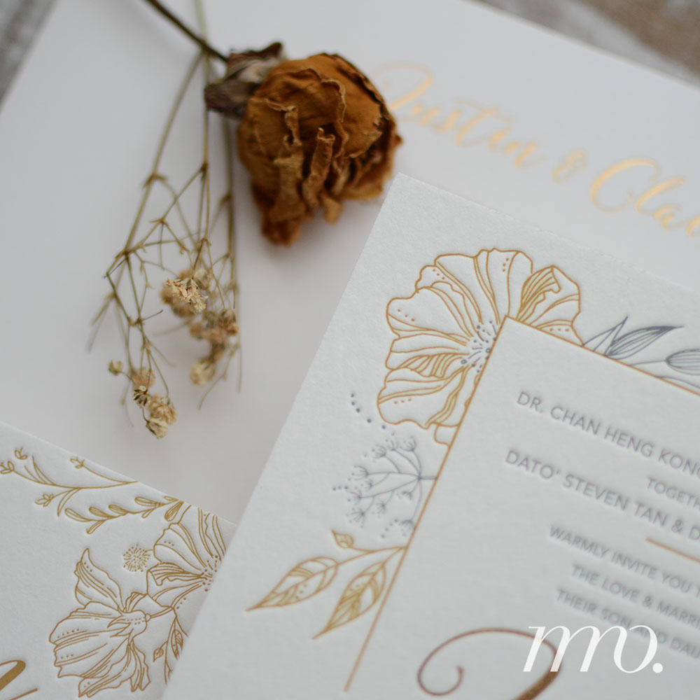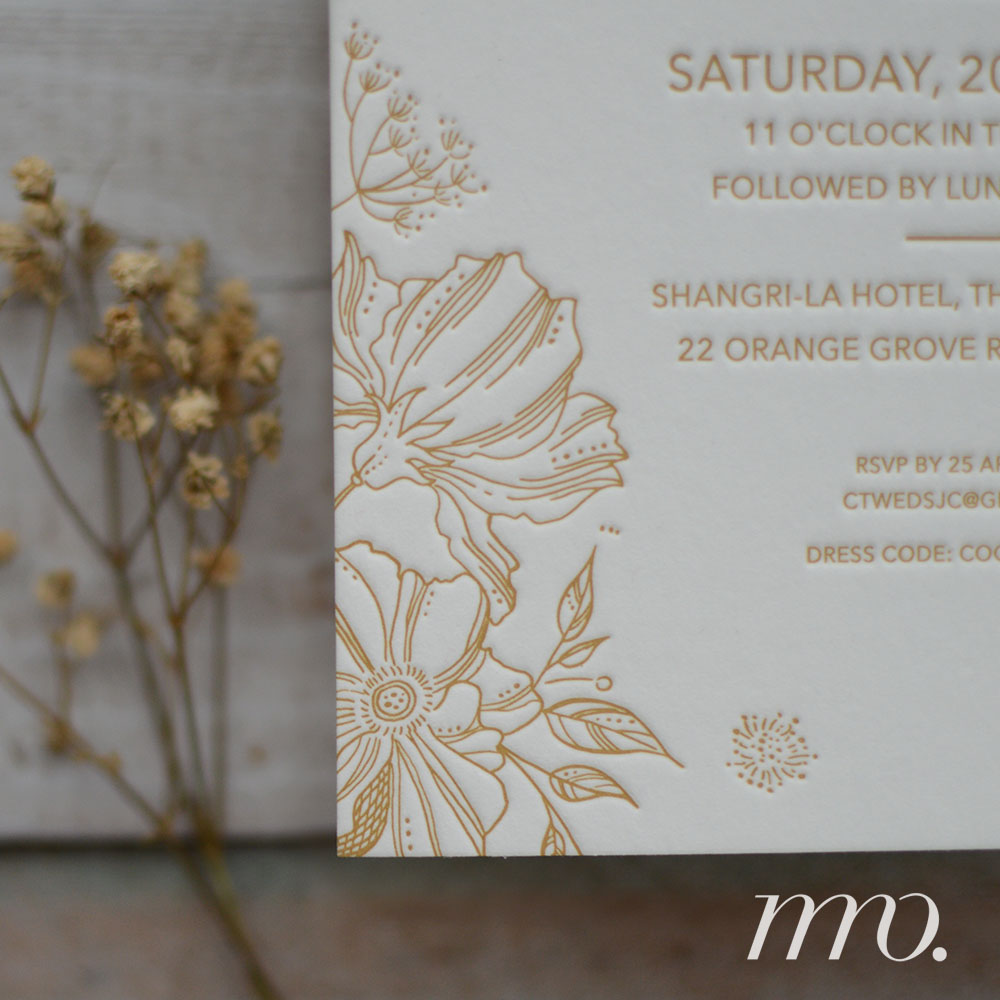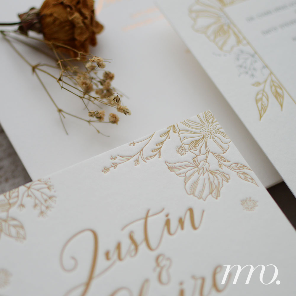Letterpress invitation // 2 colour letterpress // 1 Gold Foil // 2 piece-set // bespoke design // Cotton paper