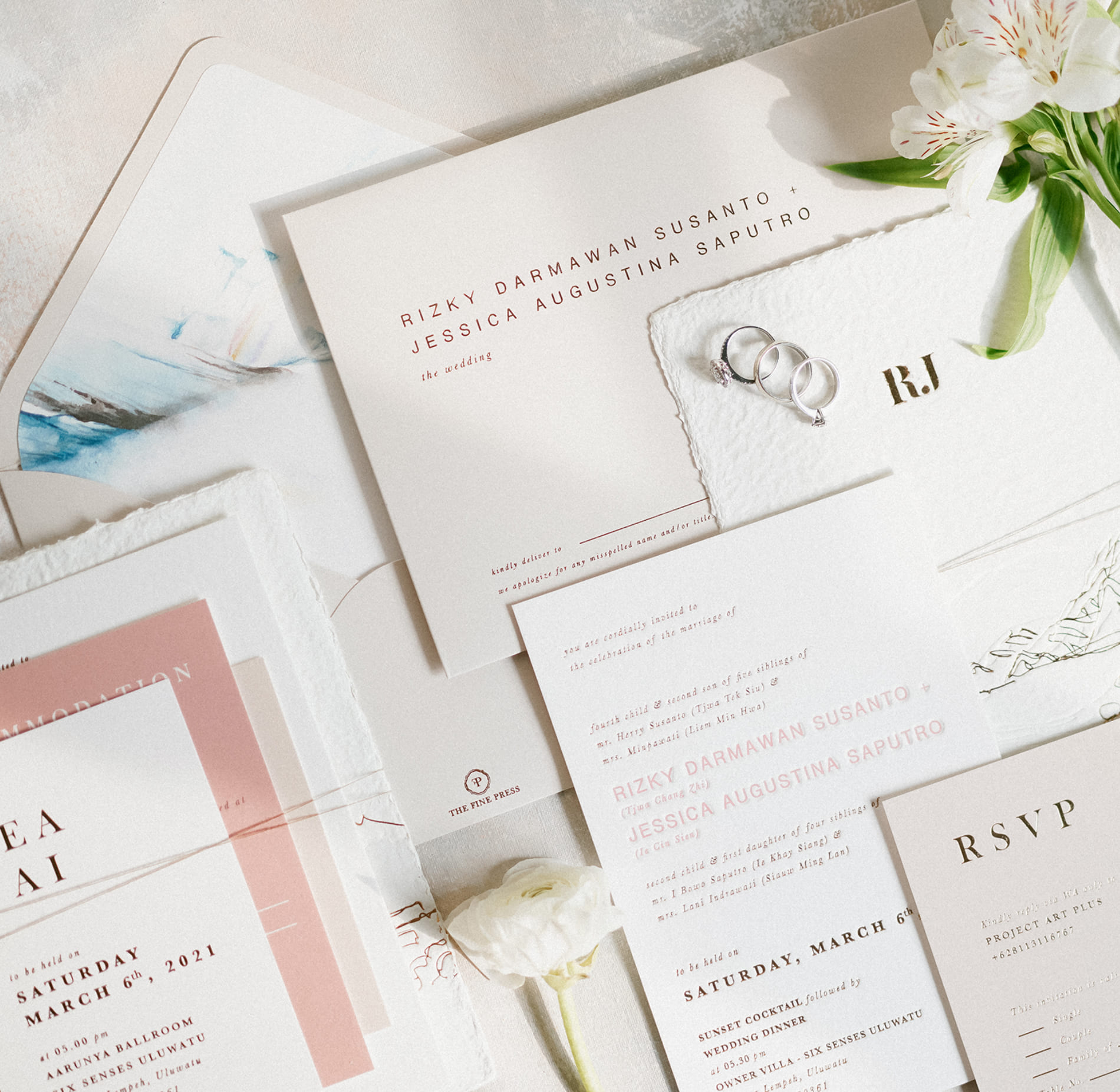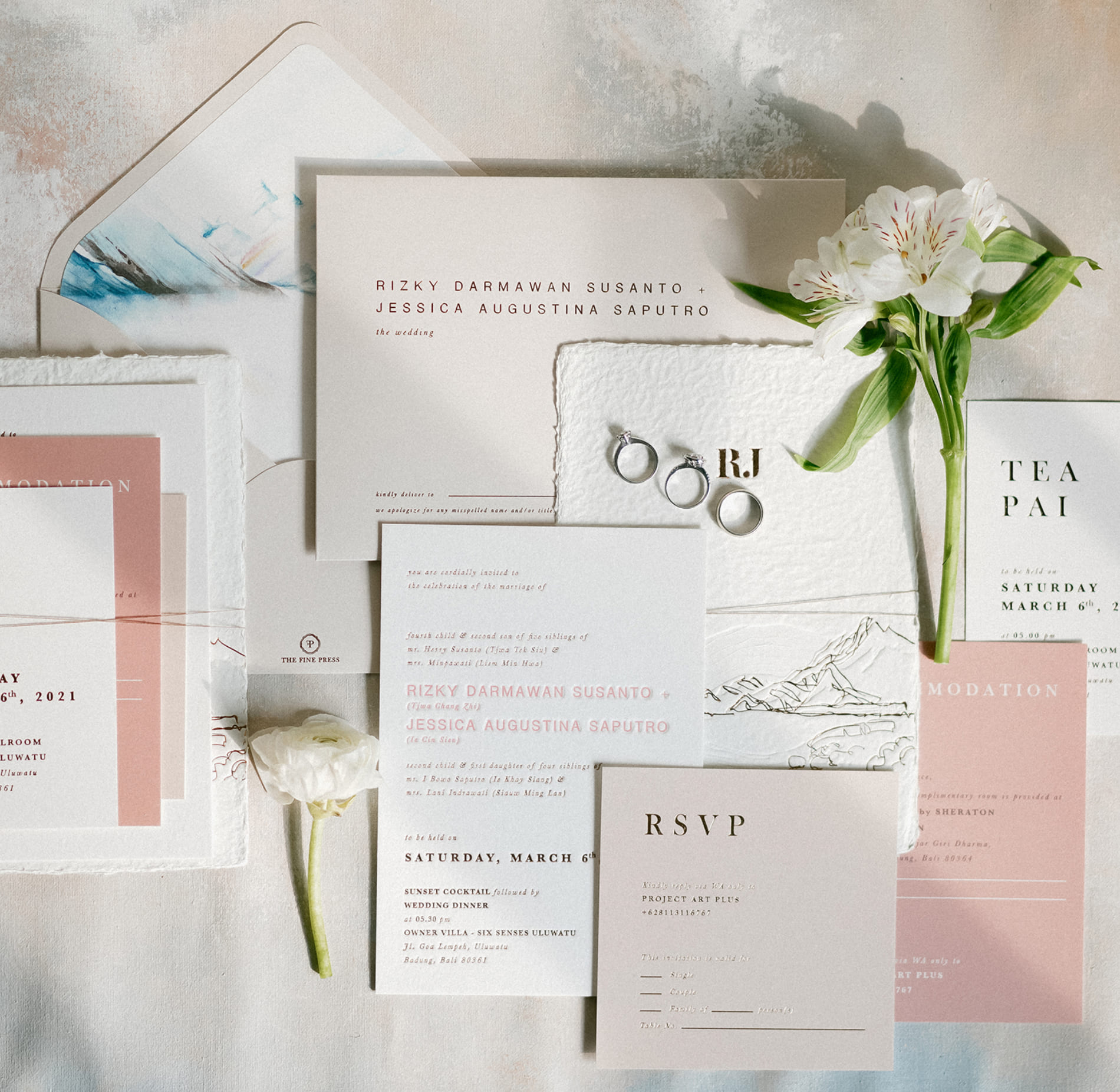 Six Senses Uluwatu, Bali - Destination wedding - Venue illustration - Letterpress invitation